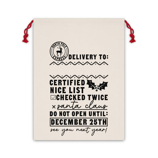 Gift Bag from SANTA SACK, North pole express delivery to certified nice list