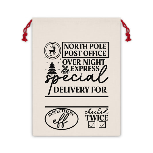 Gift Bag from SANTA SACK, North pole post office overnight express special delivery for inspected by elf