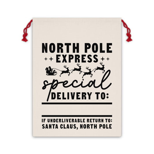 Gift Bag from SANTA SACK, North pole express special delivery to if undeliverable return to santa claus north pole