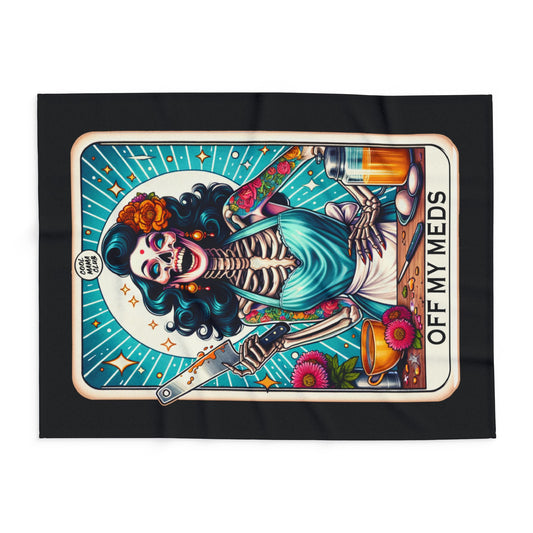 OFF MY MEDS Skeleton Black Tarot Card | Arctic Fleece Blanket | 30" x 40", 50" x 60", and 60" x 80"