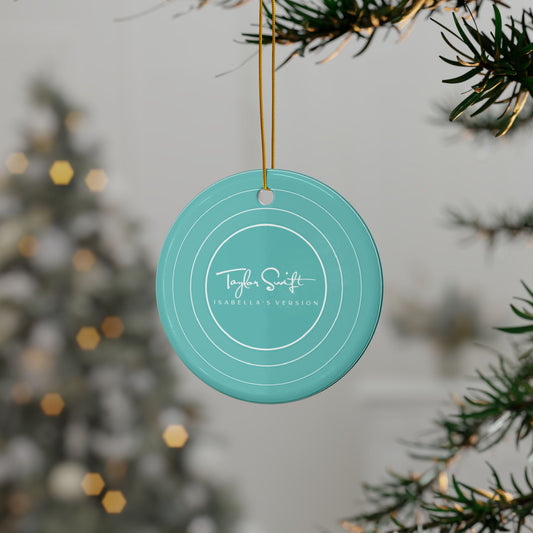 Personalized Ceramic Ornament, AQUA BLUE Vinyl Record | CUSTOM Version, Name or Era | 4" x 4" | Swiftie Gift Fan Present