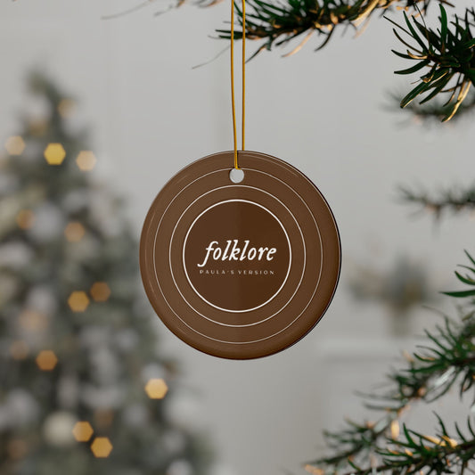 Personalized Ceramic Ornament, FOLKLORE Brown Vinyl Record | CUSTOM VERSION's Name or Era | 4" x 4" | Swiftie Gift Fan Present
