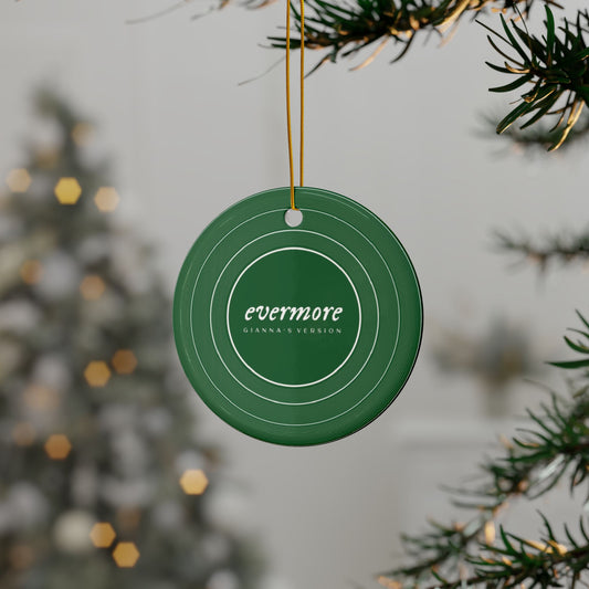 Personalized Ceramic Ornament, EVERMORE Forest Green Vinyl Record | CUSTOM VERSION's Name or Era | 4" x 4" | Swiftie Gift Fan Present