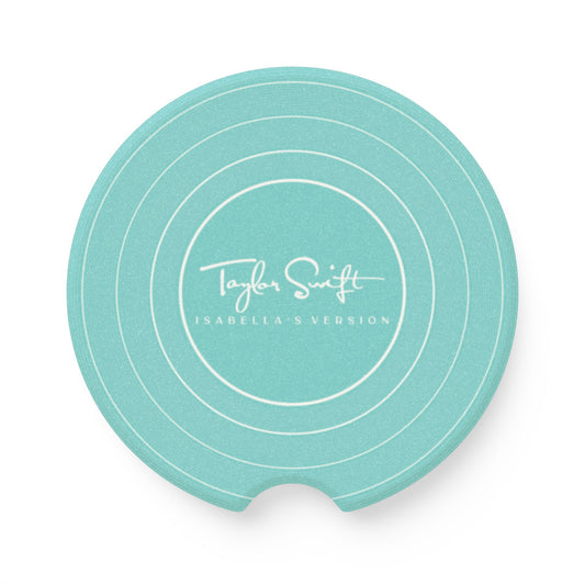 Personalized AQUA Blue Vinyl Record Soapstone Car Coaster, CUSTOM VERSION's Name | 2.6" x 2.6" round | Swiftie Fan Gift