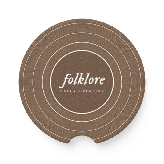 Personalized FOLKLORE Brown Vinyl Record Soapstone Car Coaster, CUSTOMIZED VERSION'S Name | 2.6" x 2.6" round | Swiftie Fan Gift