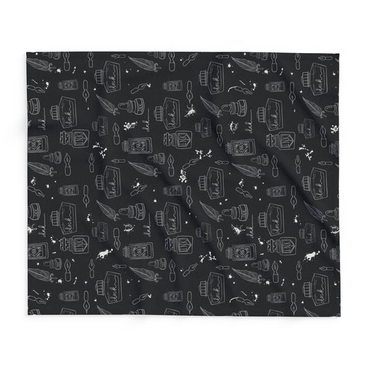 Tortured Poets Inspired Black Arctic Fleece Blanket | 30x40", 50x60", 60x80" | Swiftie Gift Fan | ink, pen, feathers, writer