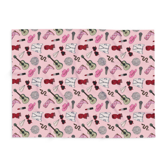 Eras Inspired PINK Arctic Fleece Blanket | 50x60", 60x80" | Swiftie Gift Fan | All Too Well Scarf, Guitar, Disco Ball, Cardigan, Boots, Hat