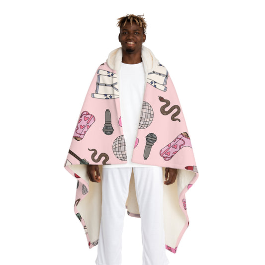 Eras Inspired PINK Hooded Sherpa Fleece Blanket | 70.5" x 52" | Swiftie Gift | All Too Well Scarf, Guitar, Disco Ball, Cardigan, Boots Hat