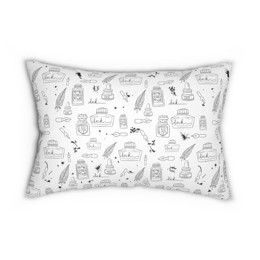 Tortured Poets Inspired Black and White Spun Polyester Square Pillow | 20×14 inches | Swiftie Gift Fan Present | ink, pen, feathers, writer