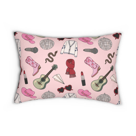Eras Inspired PINK Spun Polyester Lumbar Pillow | 20" × 14" | Swiftie Gift Fan Present | All Too Well Scarf