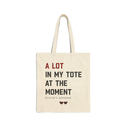 15" x 16" Cotton Canvas Bag | A Lot In My Tote At The Moment FAUX Red Glitter Print | CUSTOM PHRASE Era Available | Swiftie Trick or Treat