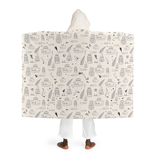 Tortured Poets Inspired Black and White Hooded Sherpa Fleece Blanket | 70.5" x 52" | Swiftie Gift Fan Present | ink, pen, feathers, writer